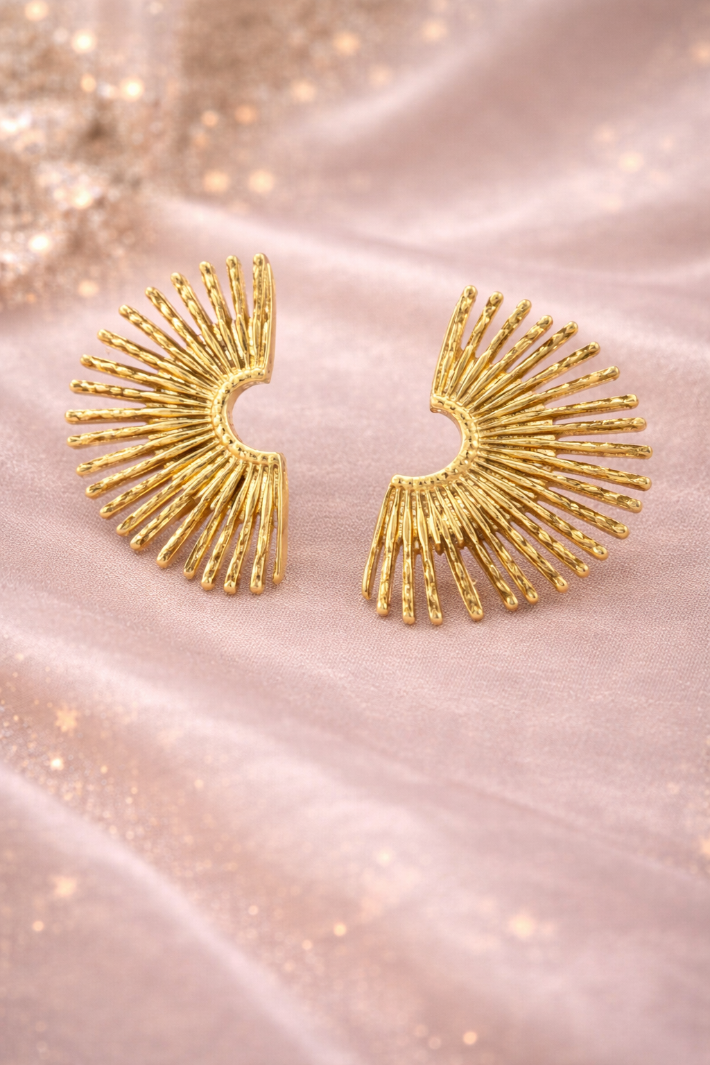Ces boucles d’oreilles soleil signées KF Forever captent instantanément le regard grâce à leur design rayonnant et leur texture travaillée.