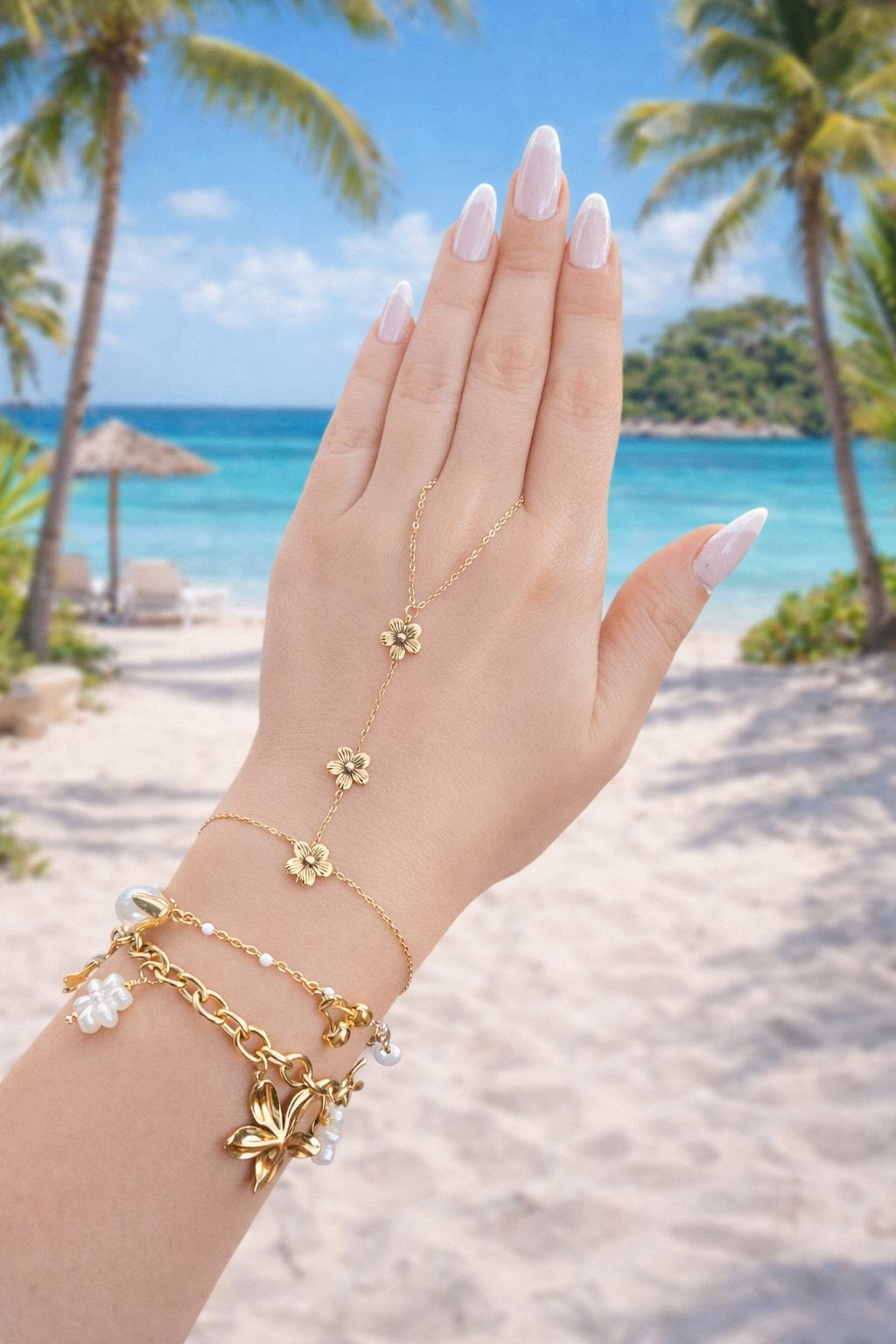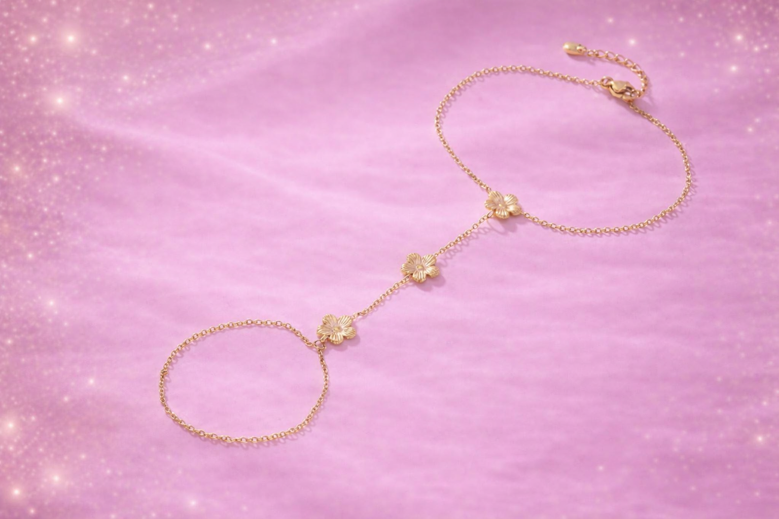 Sublimez votre main avec ce bracelet bague fleur en acier inoxydable doré, à la fois élégant et ultra résistant.