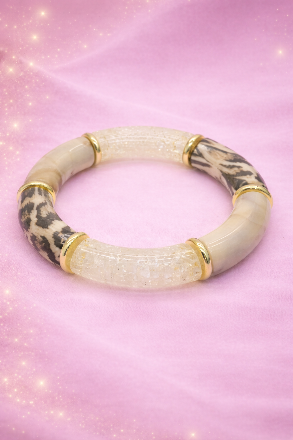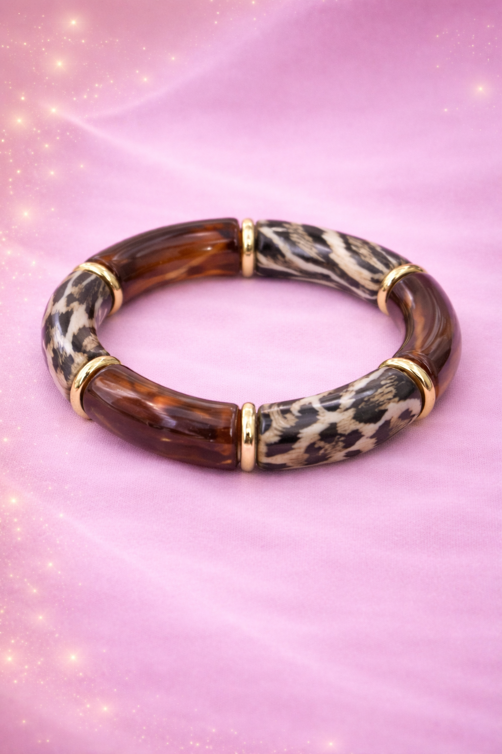 Les nuances chaudes et les motifs écaille créent un bijou unique, parfait pour celles qui aiment les accessoires avec du caractère.