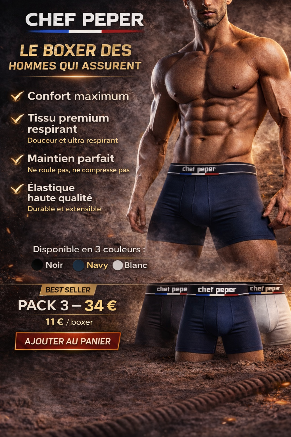 Le caleçon homme “Tireur de litre” de la marque Chef Peper est un sous-vêtement original qui mélange humour et confort.