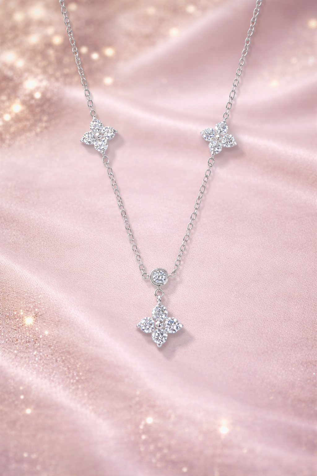 Apportez une touche d’éclat et de finesse à votre style avec ce collier en or délicat, orné de pendentifs en forme de fleurs sublimés par des zircons scintillants.