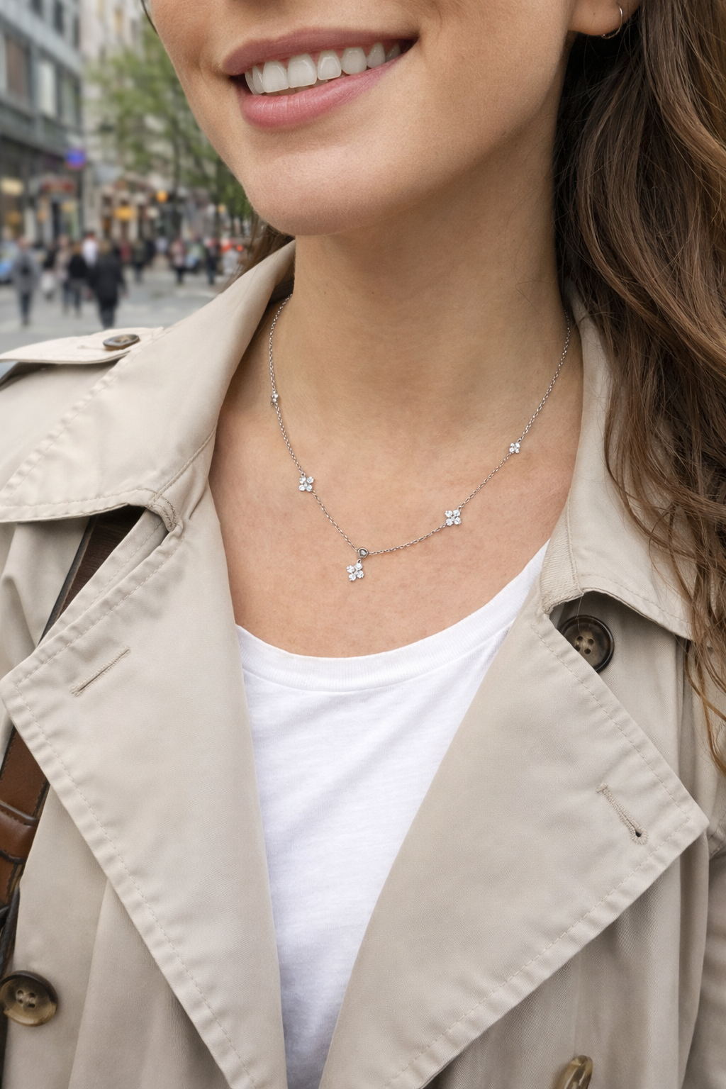 Alternative élégante au diamant, le zircon offre une brillance remarquable tout en restant accessible. Ce bijou capture la lumière avec subtilité pour illuminer votre décolleté avec raffinement.