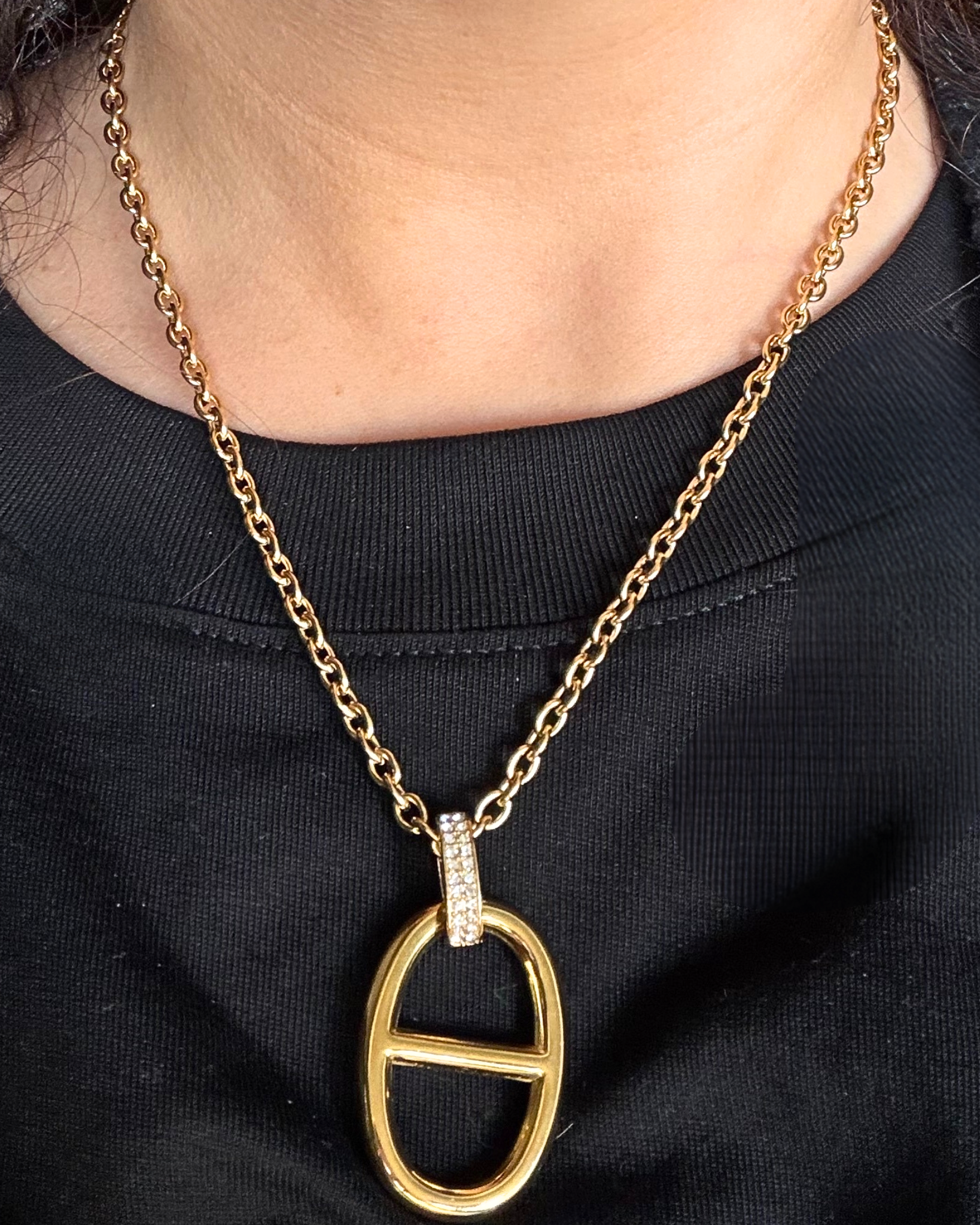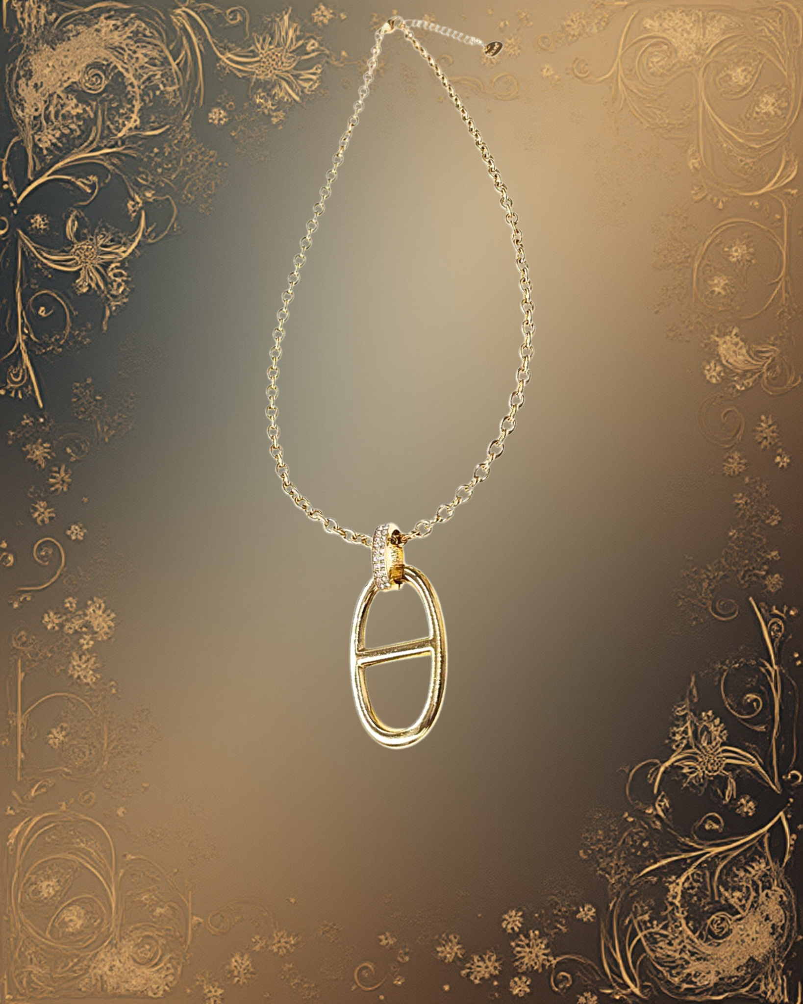 Un collier doré orné d’un pendentif structuré et symbolique. “Sceau Sacré” incarne la protection, le mystère et la puissance intérieure, comme un emblème porté près du cœur.