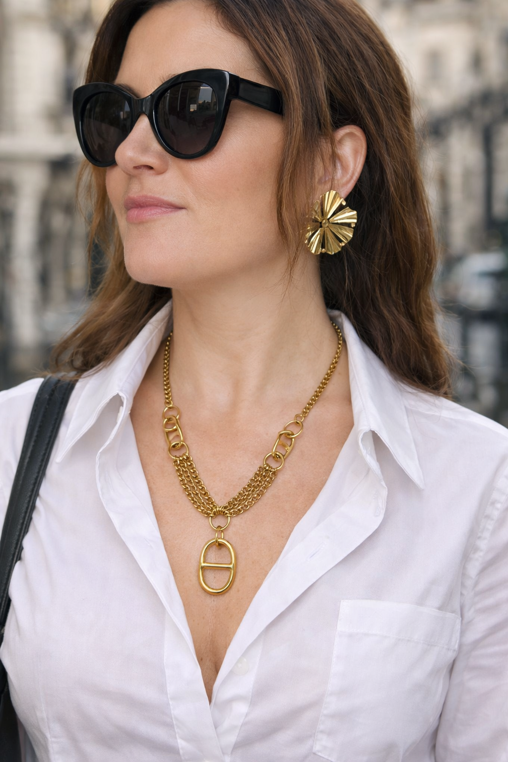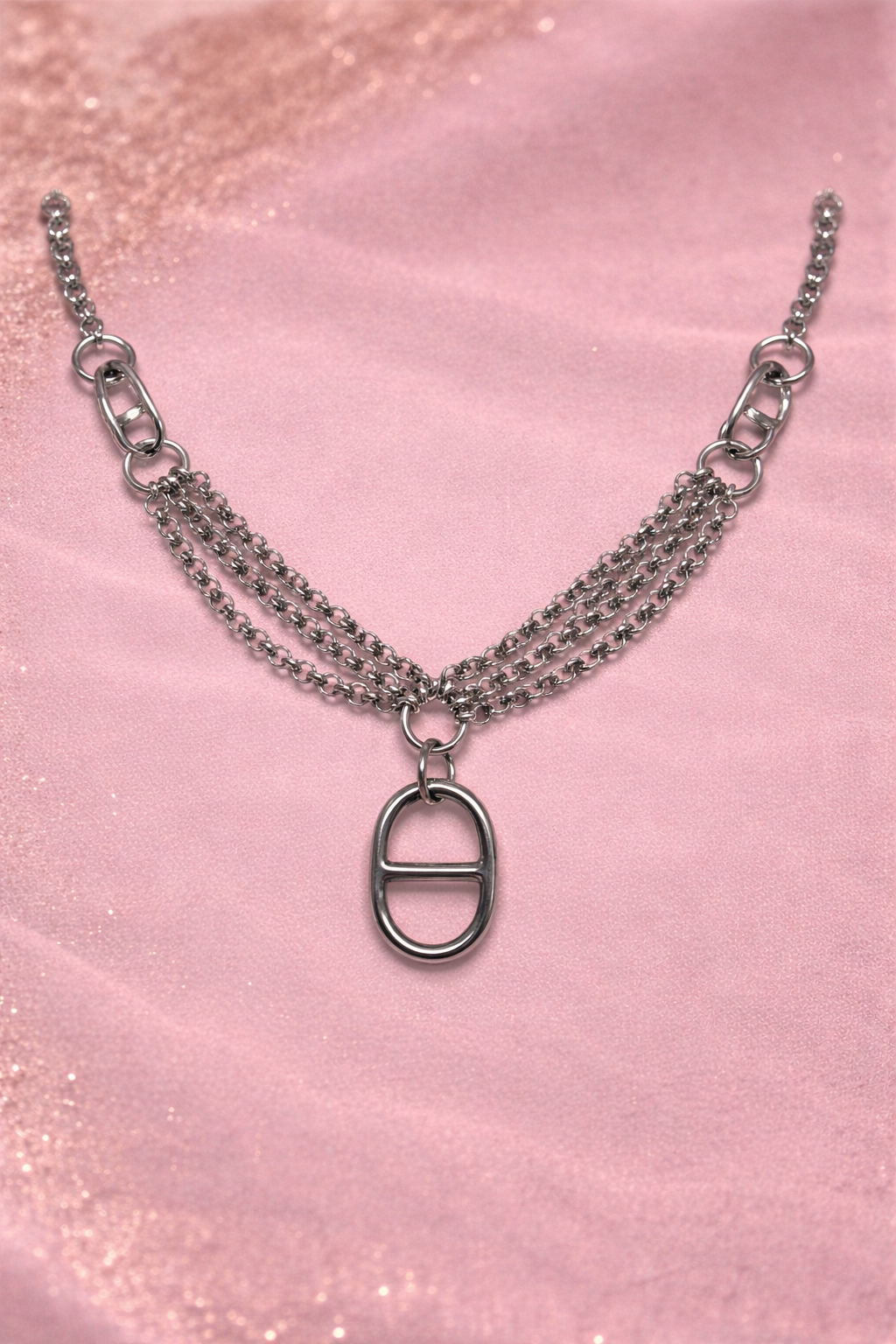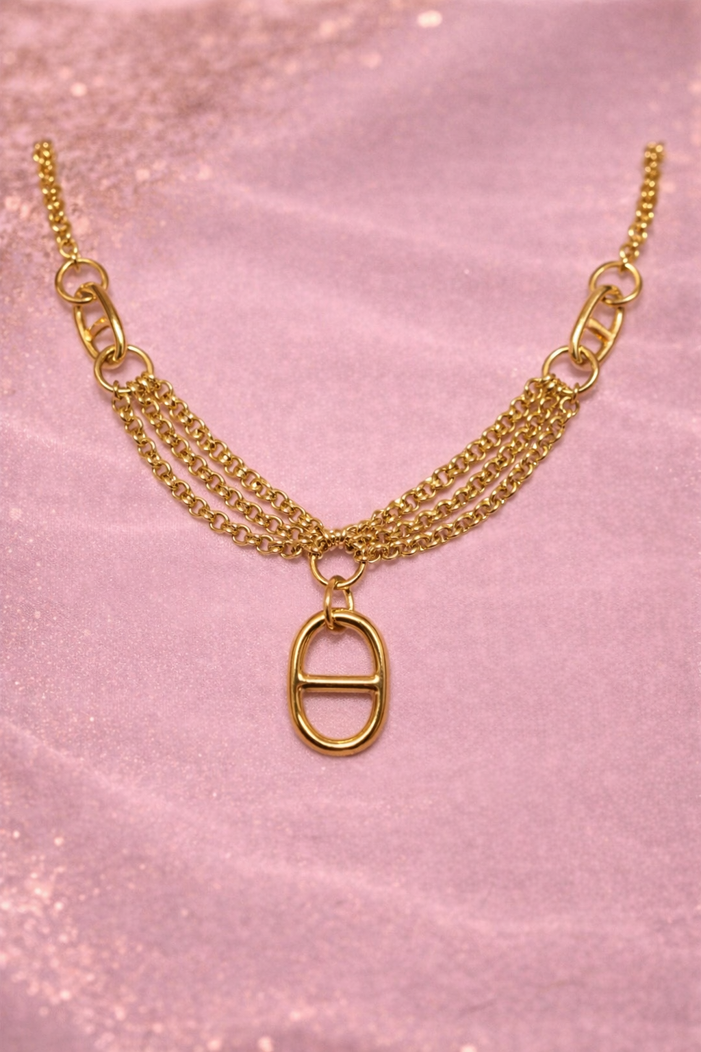 Collier chaîne multi-rangs avec pendentif ovale – Bijou tendance femme | KF Forever