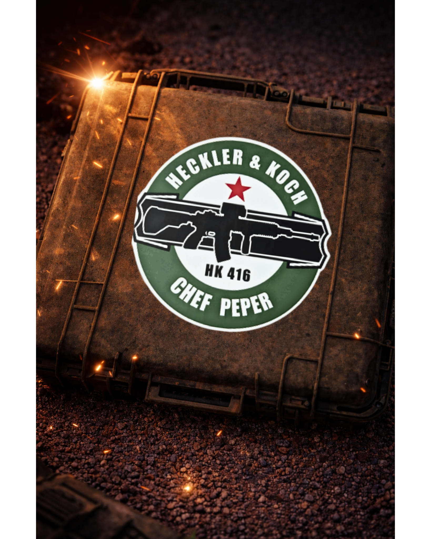 Ce stickers est un mélange de l’arme de dotation de l’armée française hk416 et la boisson de dotation des chantiers français. Amateur ou professionnel, on a tous bu une binouse avec tonton jacky en plein caniard maintenant tu pourras toujours le faire avec ton patch à l’épaule ou alors si tu es audacieux tu pourras même l’utiliser en dessous de verre😜