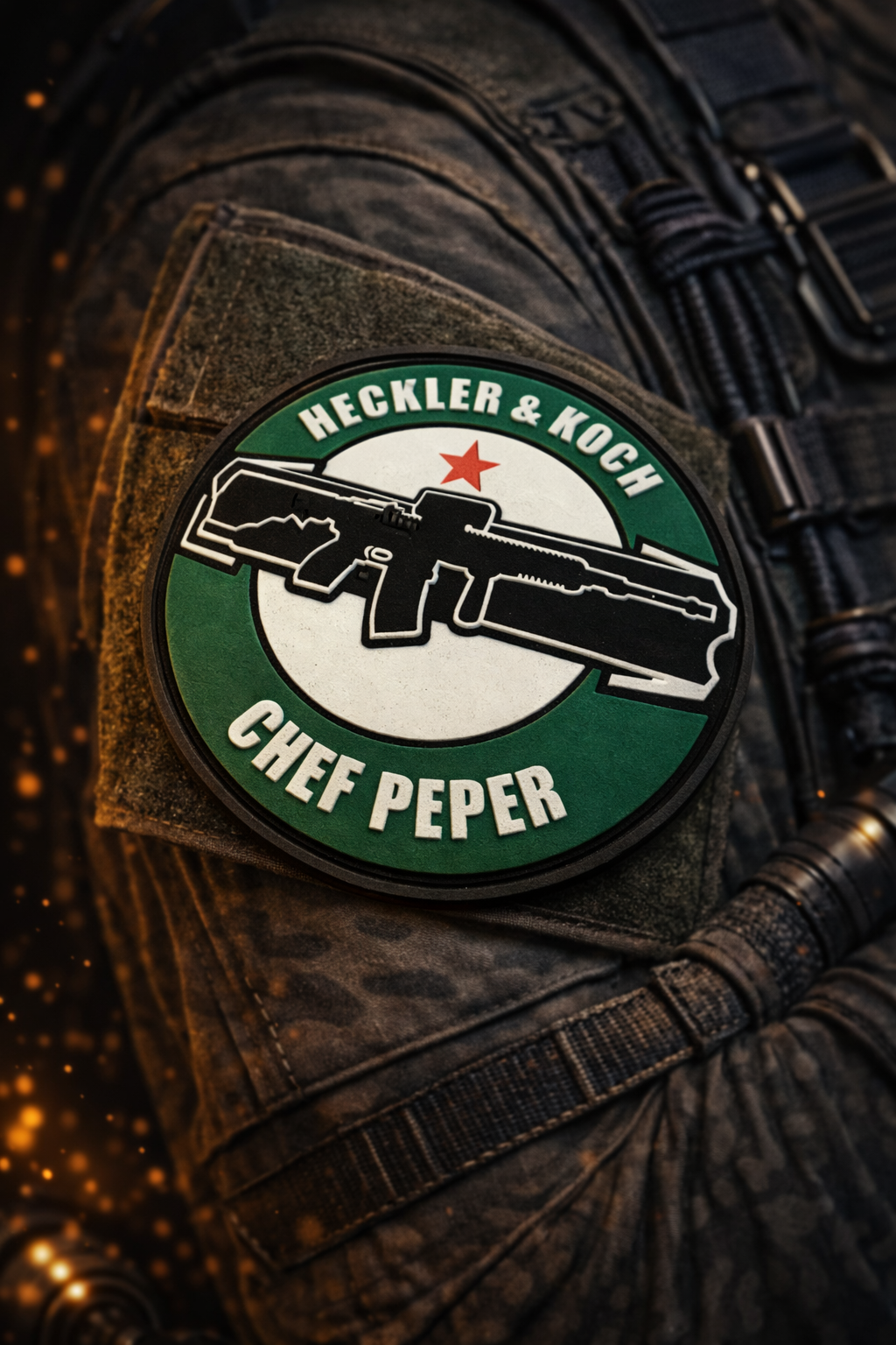 Ce patch est un mélange de l’arme de dotation de l’armée française hk416 et la boisson de dotation des chantiers français. Amateur ou professionnel, on a tous bu une binouse avec tonton jacky en plein caniard maintenant tu pourras toujours le faire avec ton patch à l’épaule ou alors si tu es audacieux tu pourras même l’utiliser en dessous de verre😜bien fraîche le patch
