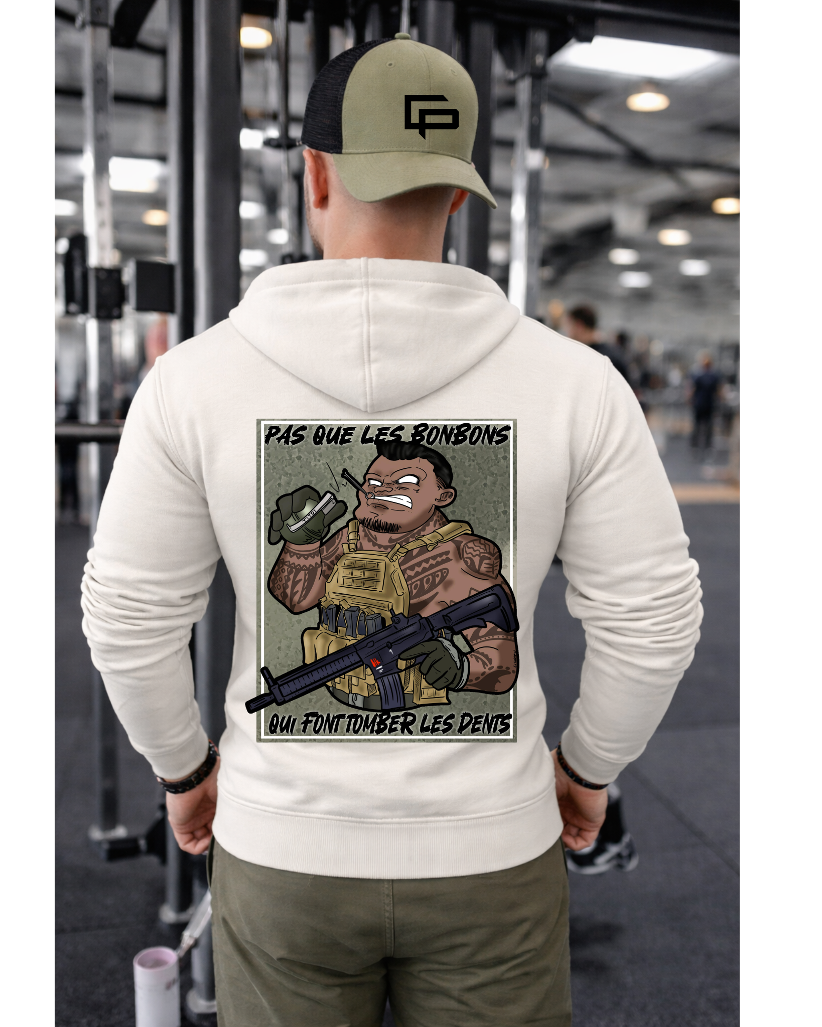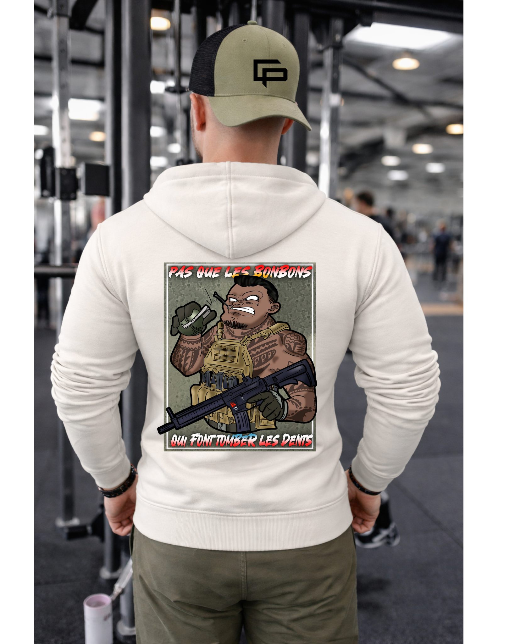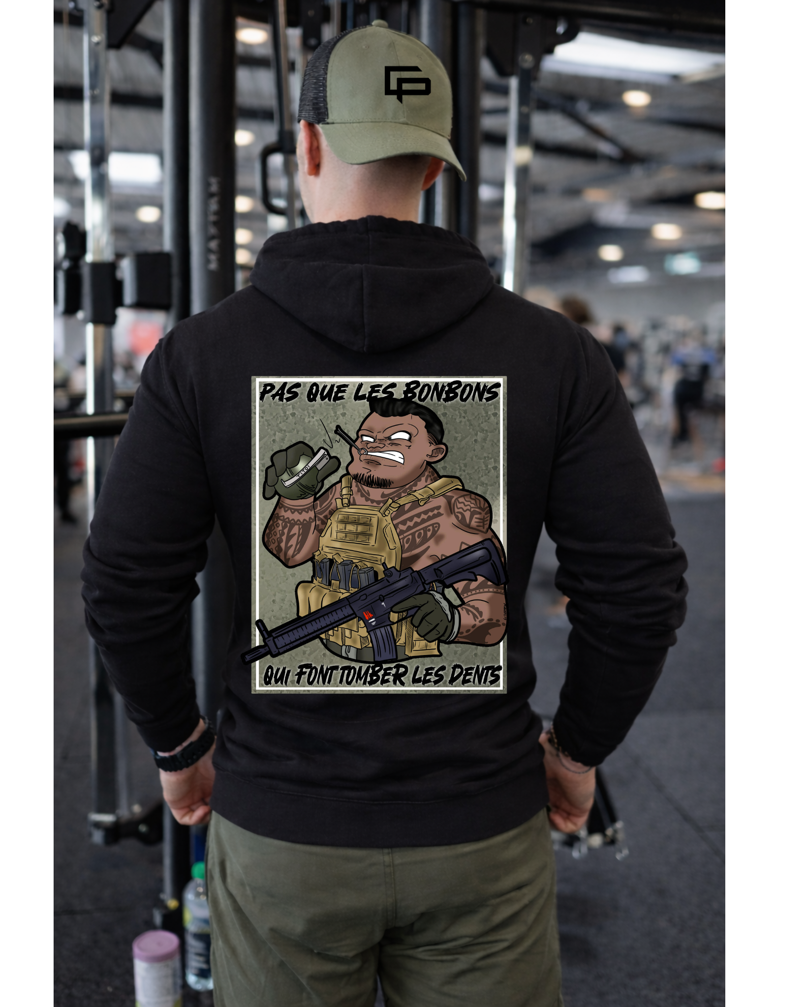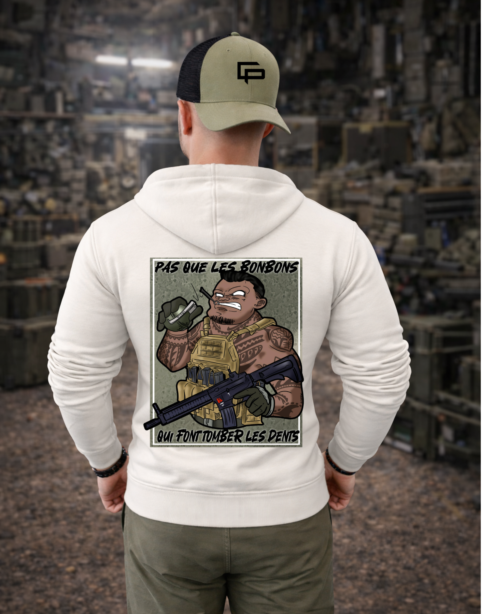 Sweat streetwear humour – “Y a pas que les bonbons qui font tomber les dents”