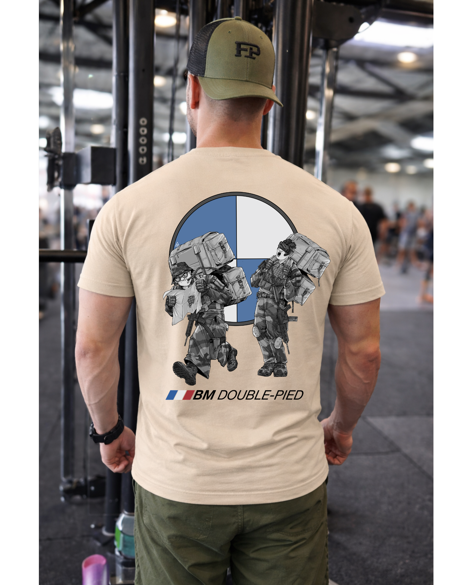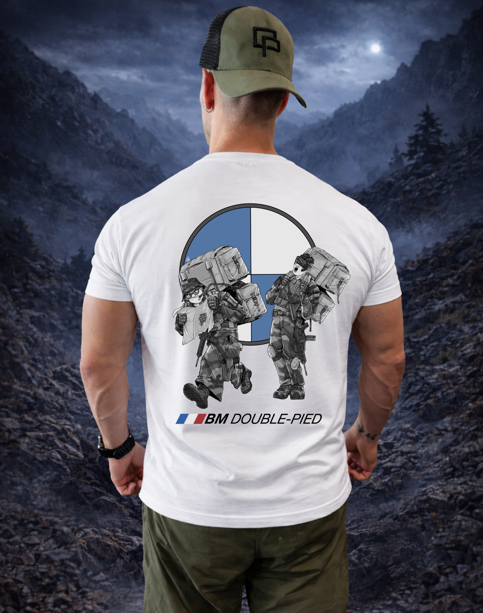 On a tous connu ces 2 pinpins à la pause obligatoire de 10min toutes les 1 heure? Et on a tous attendu un jour un hélicoptère qui n’est jamais arrivé la faute à qui à quoi peu importe le BM DOUBLE PIEDS est simplement ce qui représente le mieux un soldat de l’armée française. Du matos que tu portes conforme au PATRACDR même si tu sais que t’en servira pas, un sac cheminée déployée tellement lourd que tu demandes même si tu préférerais pas porter ta femme sur le terrain et on en parle du holster cuisse qui termine en holster des genoux?