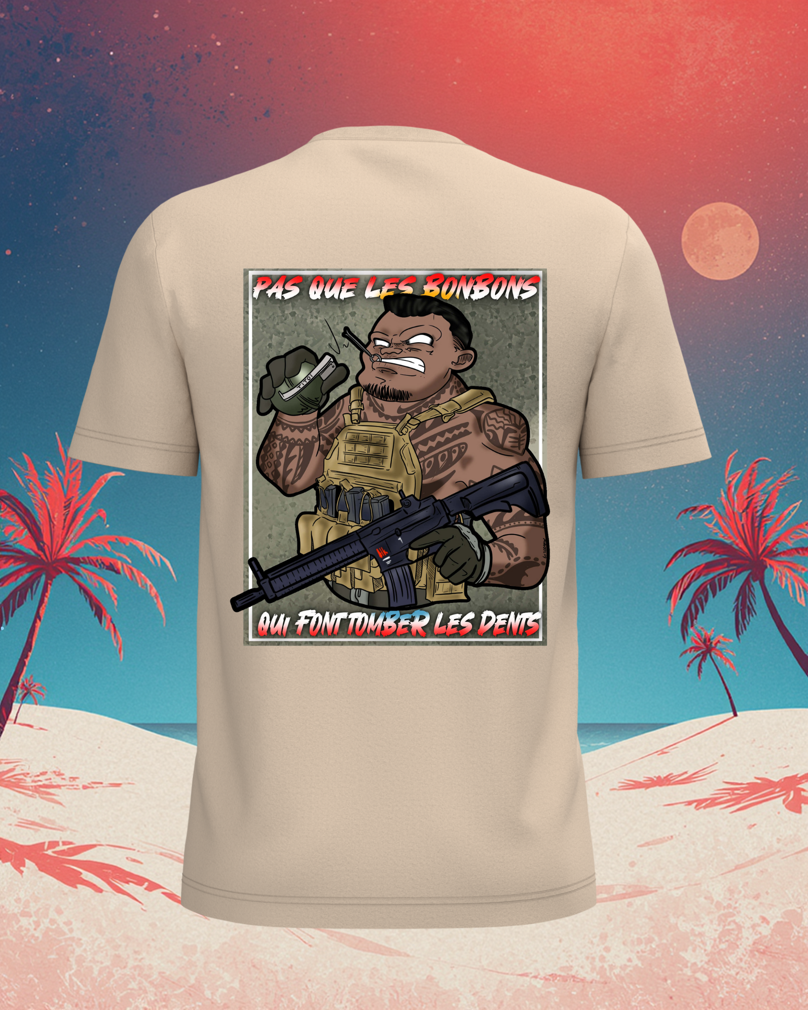 Pas que les bonbons qui font tomber les dents je te fais pas de dessin mais ah bah si je t’en fais un du coup 👊 avec ce design on rend hommage à la Polynésie mais au-delà de ça c’est un hommage à tous nos outre-mer qui aiment bien le poulet et le cochon j’espère juste qu’il vous plaira sinon je vais finir en four tahitien 🤝💪